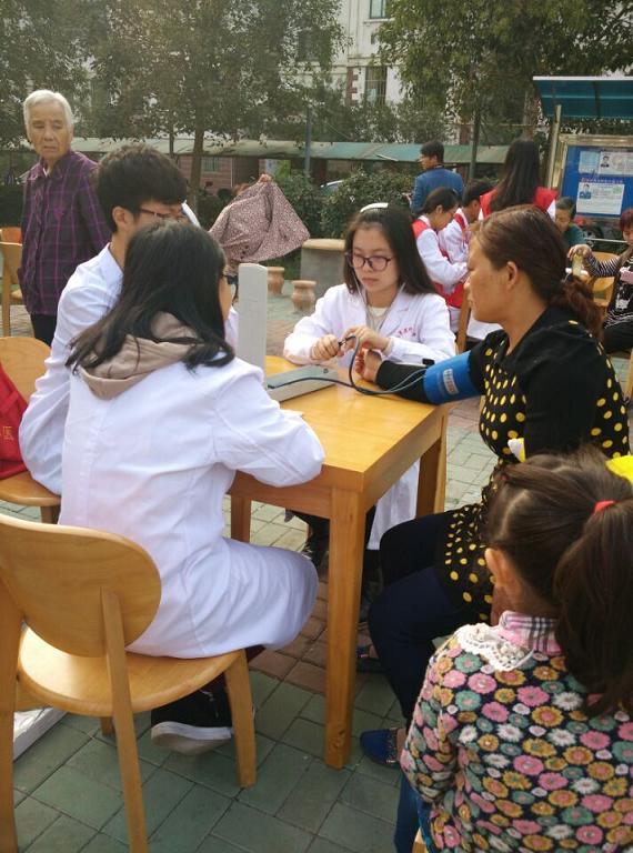 居民们看着我们穿着白大褂和印着“南医大”字样的志愿者服,他们给予了我们充分的信任。活动伊始,青涩的大一同学对量血压还有点生疏,经过多次实践后,他们掌握了技巧,也由最初机械化的询问转变成真正的关心询问。
