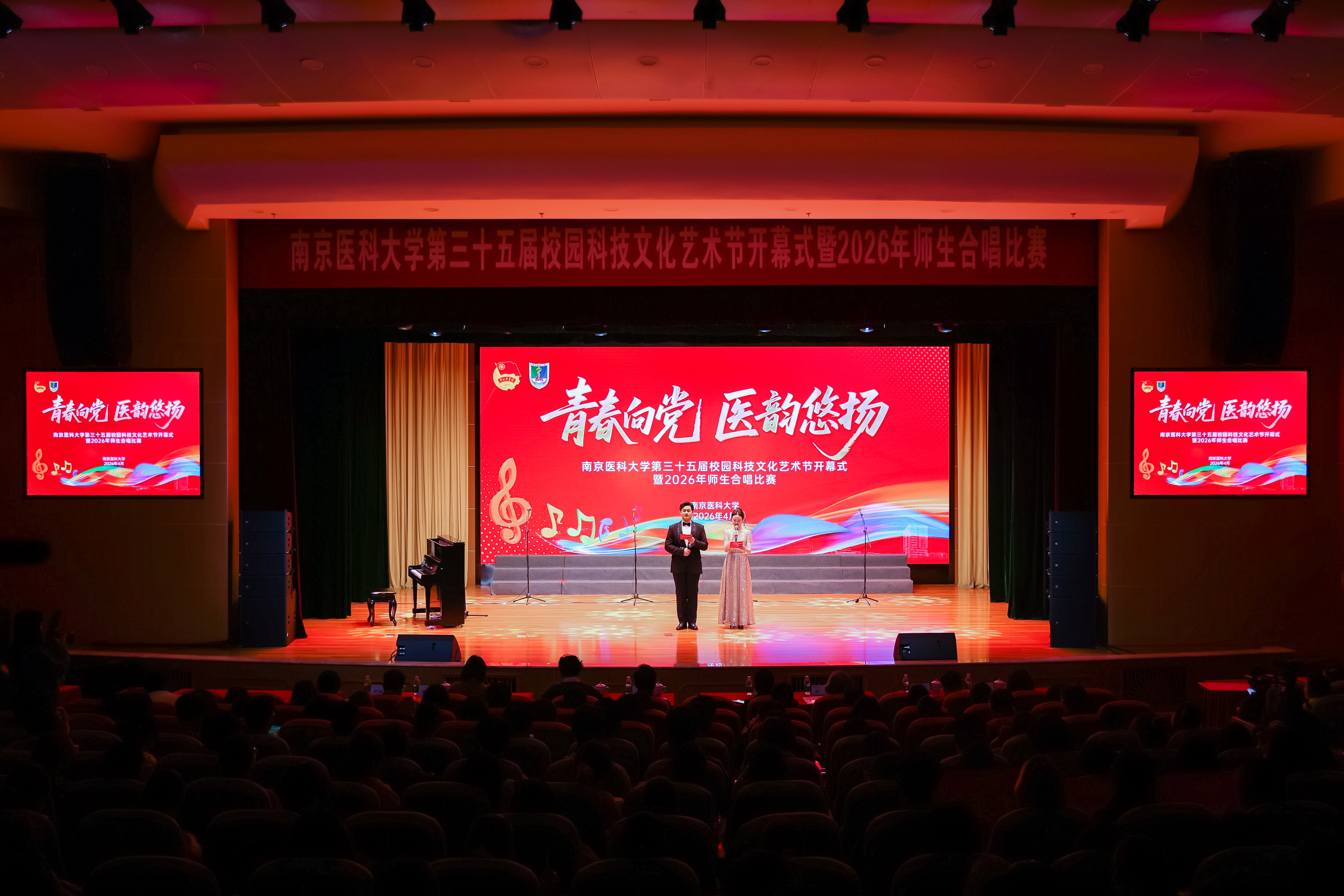 4月20日,南京医科大学第三十五届校园科技文化艺术节开幕式暨“青春向党音韵悠扬”2026年师生合唱比赛在大学生活动中心报告厅圆满落幕。本届艺术节以“歌声纪念先辈,传承五四力量”为主题,用旋律回望峥嵘岁月,以歌声赓续红色血脉。