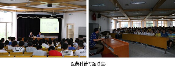 服务团在18日上午简要参观海安县苏中七战七捷纪念馆后于下午首站抵达如东马塘高级中学。马塘中学丛杰副校长热情接待了服务团一行,并就学生培养、两校交往等进行了开放式的座谈。因事前的良好沟通,服务团的到来激发了师生的浓厚兴趣,200多名学生竞相从家中赶来学校,部分教职员工也纷纷来到服务团的义诊现场。作为活动的重头戏,服务团老师向学生简要介绍了学校跨越发展情况,播放了学校宣传片,李歆副教授作了《法治化背景下的我国食品药品监督安全管理》医药科普专题讲座,刘金祥主任即兴作了学校招生政策和2015年招录情况的讲解。