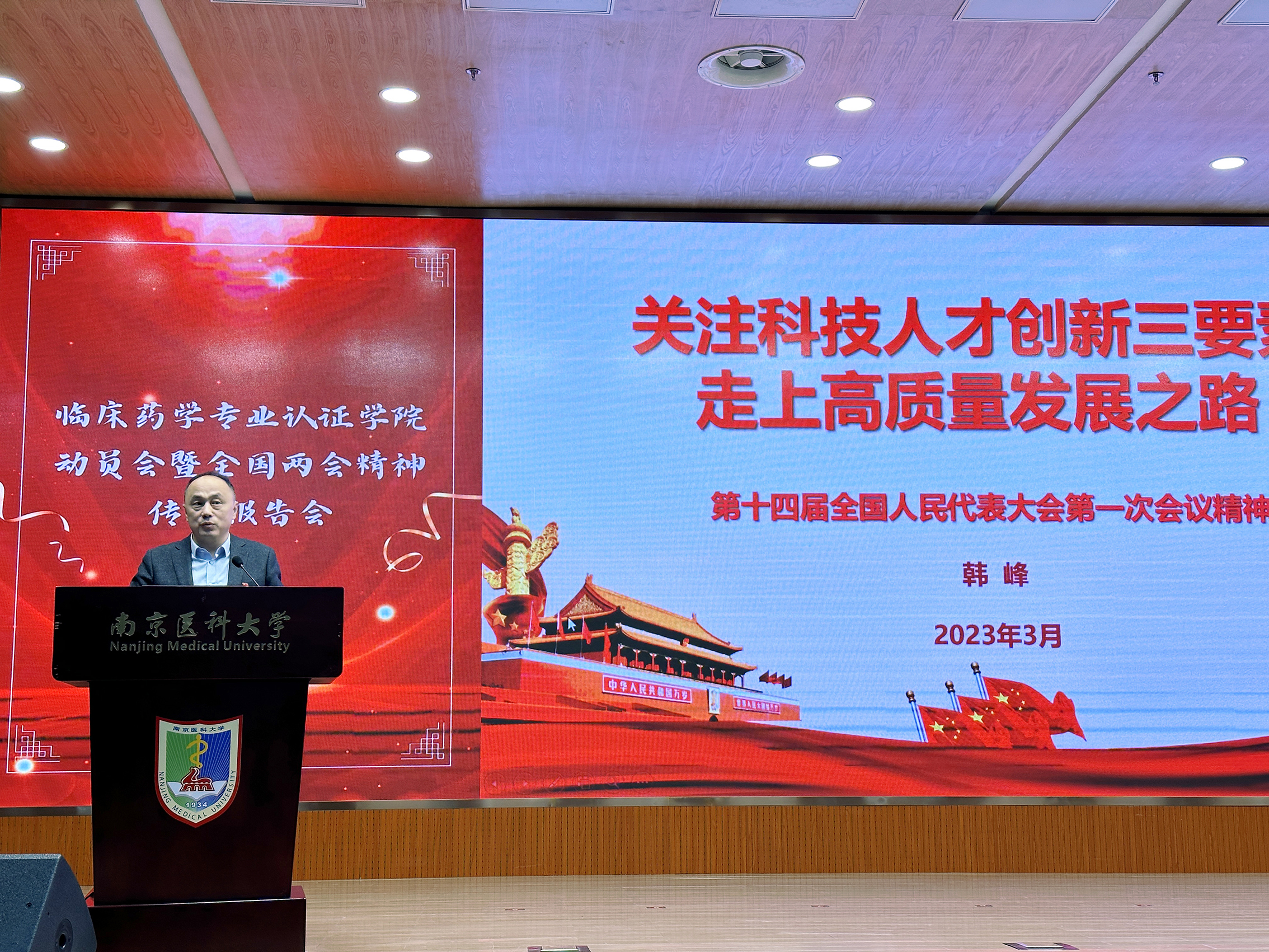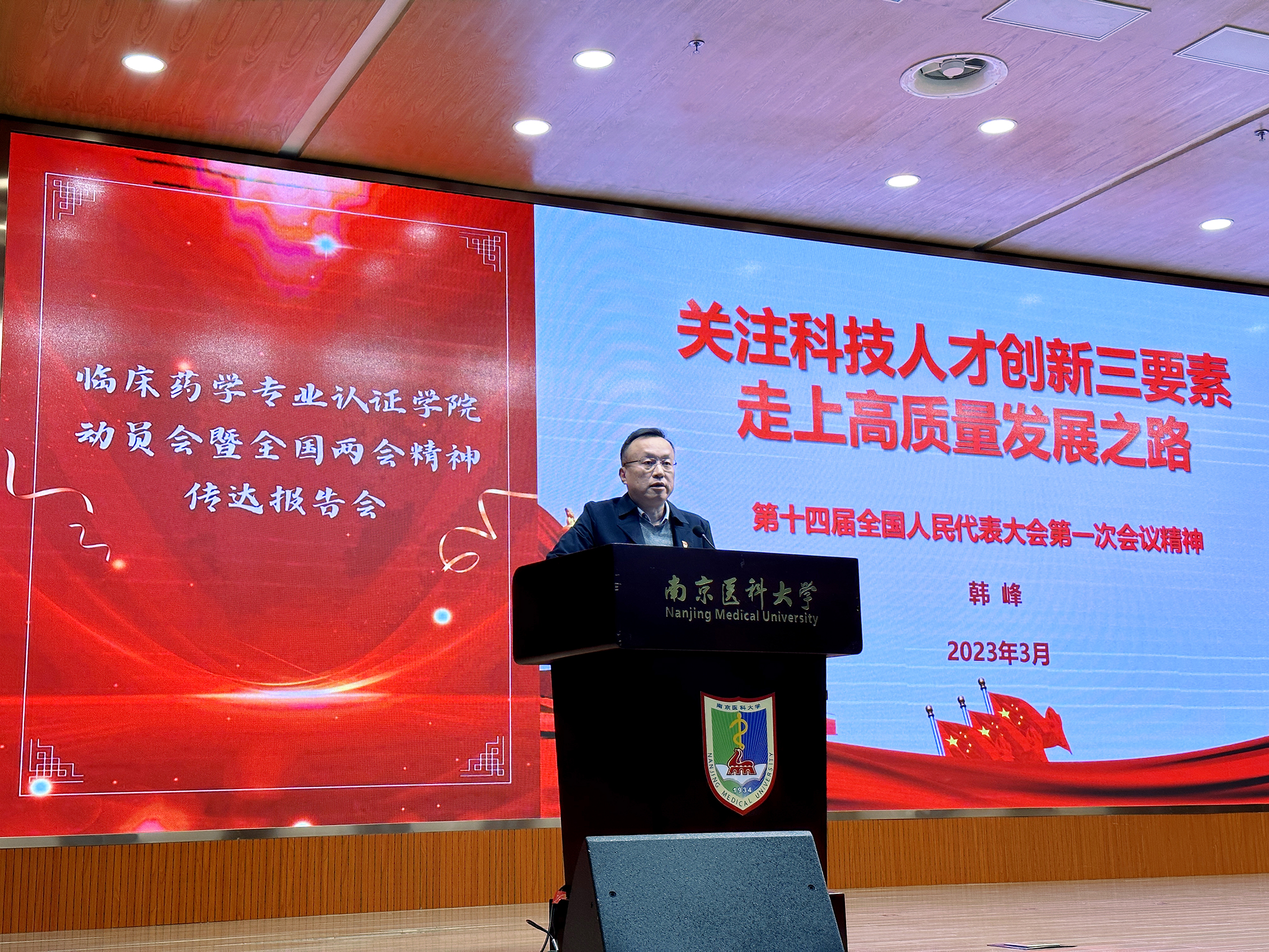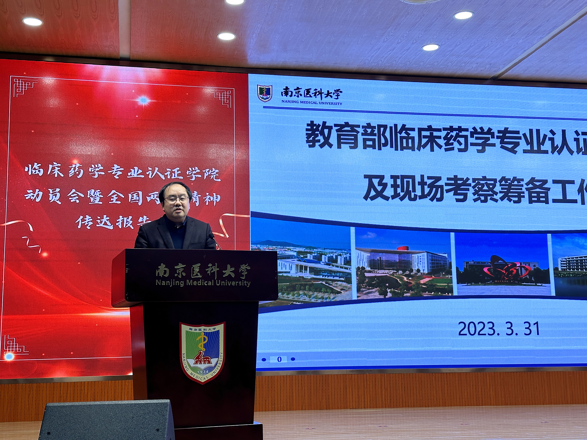 3月31日下午,我院在至诚楼三楼报告厅召开全国两会精神传达报告会暨临床药学专业认证动员会,学院领导班子及全体教职工参加会议。会议由马俊书记主持。