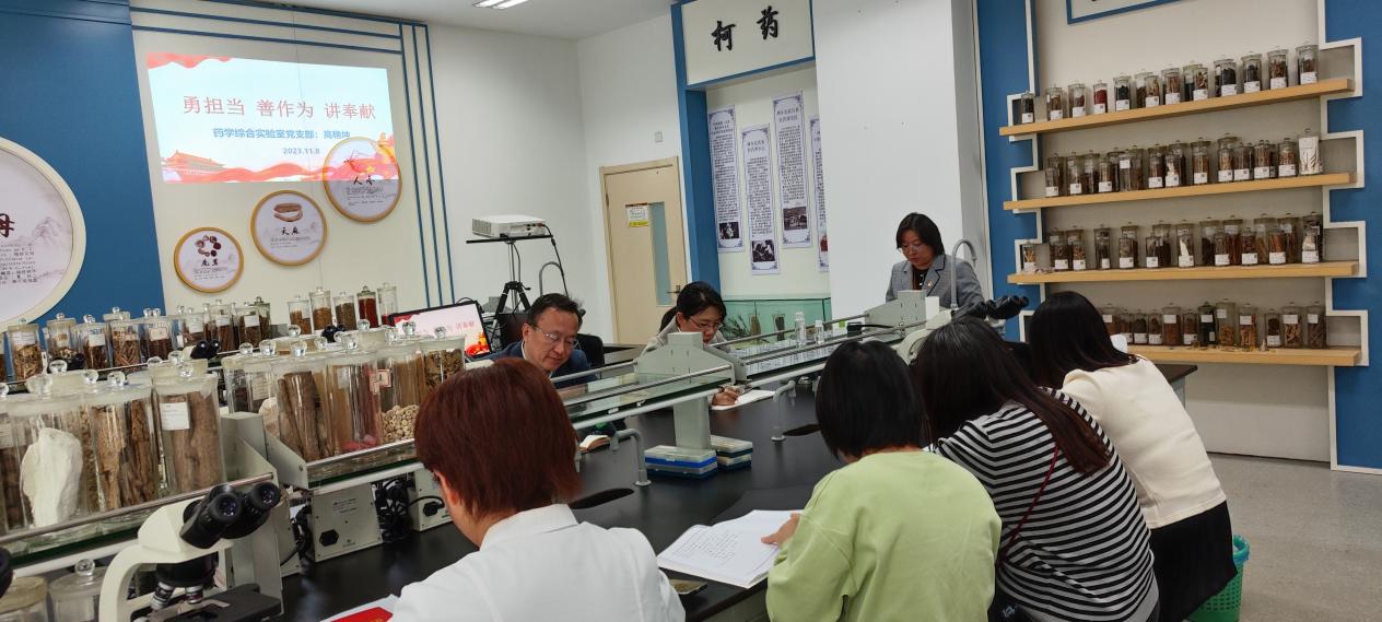 11月8日下午,药学院党委书记马俊参加药学综合实验室党支部的政治学习及样板支部建设推进会。