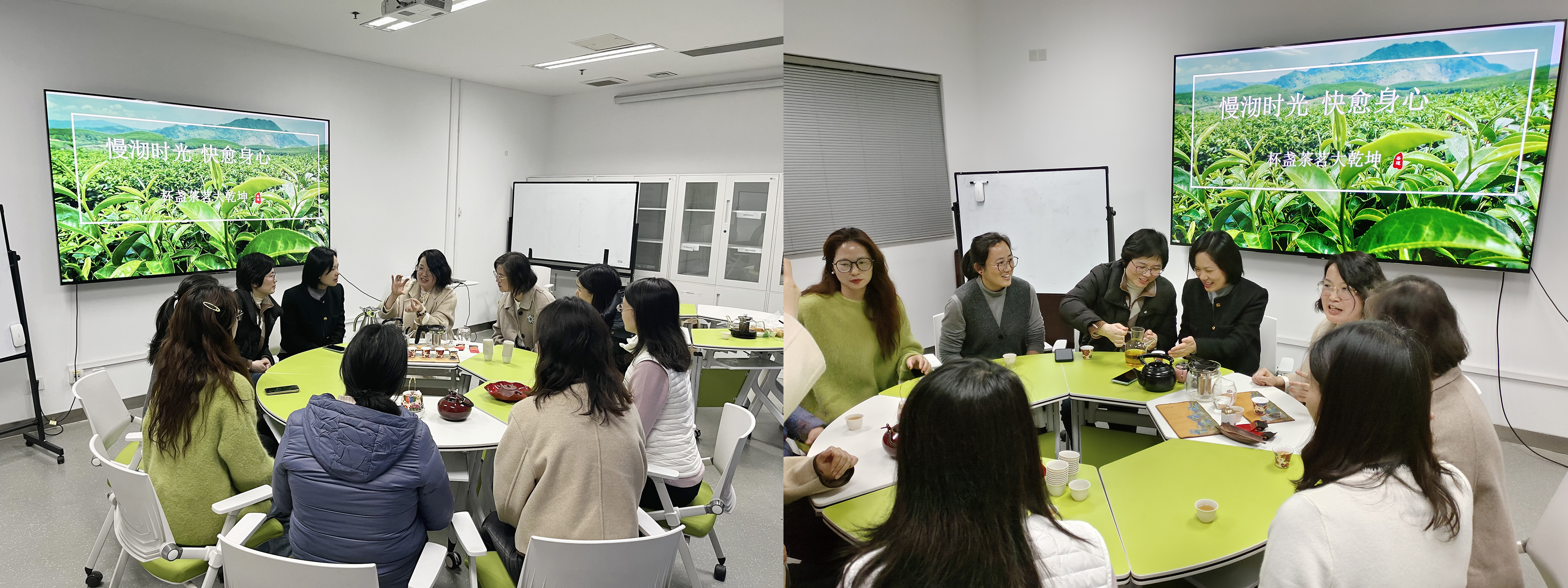 讲座结束后,与会师生共同参与茶艺体验活动。在战主任的指导下,大家赏茶形、闻茶香、品茶韵,在杯盏流转间交流养生心得,感悟传统茶文化的魅力。活动现场茶香四溢,笑语盈盈,教职工们在轻松愉悦的氛围中放松身心,共享节日美好时光。